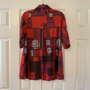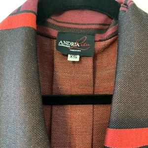Andria Lieu Collection long single button short sleeve jacket.
