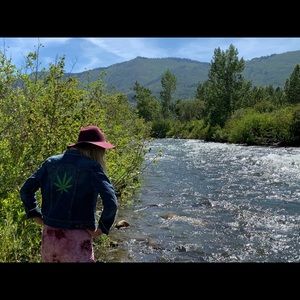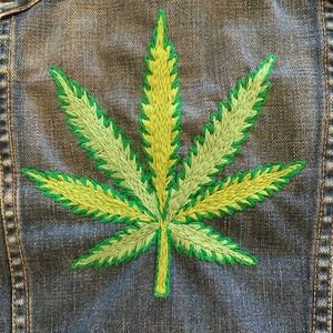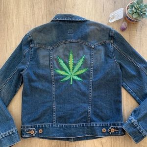 Hand embroidered pot leaf jacket π One of a kind! I hand stitched this, each stitch is done by hand by me! This jacket is made with so much love π Stitched on a 100% cotton denim jacket. Size medium. Measurements upon request.