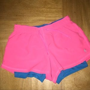Danskin Pink Athletic Shorts with blue pant liner Size 6-6x Excellent Preowned Condition.