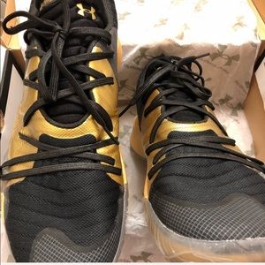 Under Armour, UA spawn low , Size: 11.5, Color: Black/Gold, Condition: 9.5/10 worn only a couple times, in great condition! Price is negotiable!!