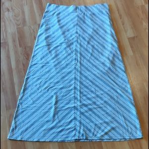 Excellent condition, no rips, stains or holes. Grey and white striped in an arrow-like pattern. I'm 5'4" and it hits above my ankles, so might be shorter on taller people.