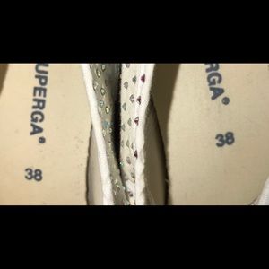 ✨Superga studded shoes. I wore them couple times but they were too big for me. I wear size 7 and have narrow feet. I put thicker socks on when I wore them. The inside bottom says there a 38. I had someone buy them that fit one foot but not the other. If u look at tongue tag it says the R is 71/2 USA & L is 8 USA so if u have one foot bigger/smaller n that size these would b great for u.I never noticed that bc they were big on me. Superga sent them to me that way. Smoke free home✨Fast shipper