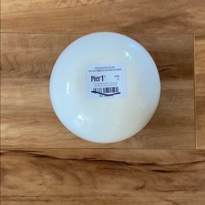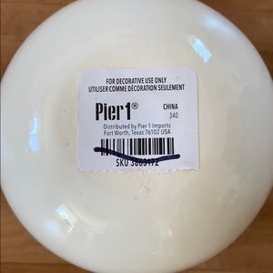 Pier 1 HOME white ceramic decorative sphere. Create unique centerpieces and tablescapes with this handcrafted sphere. Approximately measurements: 4"Dia x 4"H. Material: Stoneware, glaze. Handcrafted—slight variation in color and shape. For indoor or covered outdoor use. It’s flat on the bottom, so it can stay in place. Love and family spheres sold separately. Pictures are just for reference. Excellent conditions. Brand new with tag