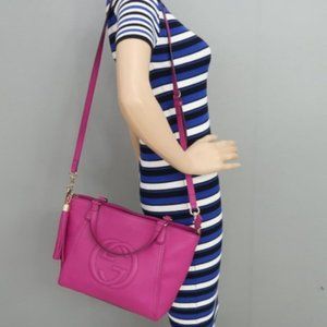 Auth Gucci Soho Small Fuchsia Calfskin Satchel Bag
