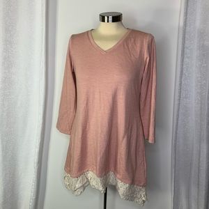 Excellent preowned condition women’s LOGO lounge handkerchief lace hem tunic
