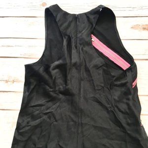 Y2K vintage! The pink zippers actually unzip! It is silk and spandex for a nice fit. Part of the hem in the back is coming undone—see last photo. The tag says size 4 but fits like an XS. Falls 19.5” from shoulder.