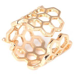 Bee Honeycomb Open Hexagon Gold Steel Ring - Adj.
