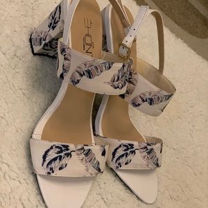 Cute White Sandal Heel Leaf design Sz 10 handcrafted in Brazil, Only wore once inside.
