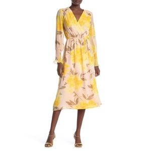 ππππ Halogen Floral Surplice Tie Waist Midi Dress