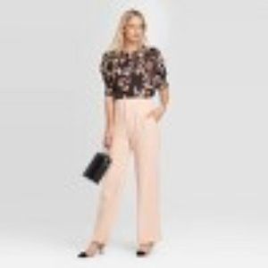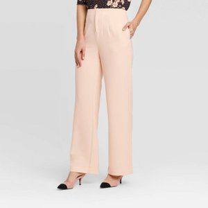 Who What Wear Women's Blush Pink High-Rise Silky Wide Leg Pull-On Pants
