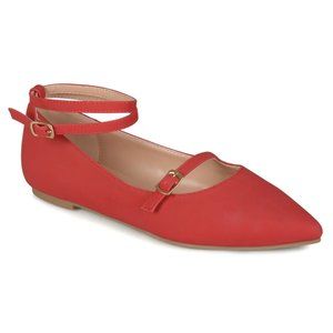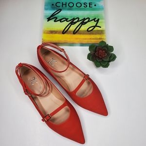 Red Ankle Strap Mary Jane Flats