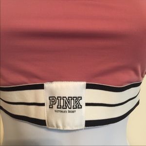 NWT Brand New VS pretty PINK Victoria's Secret sports bra. Size XS. Women's Ladies Fashion. Color rise pink. With black & white stripes. Quick dry fabric. four way stretch. light support.