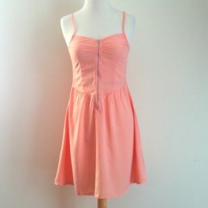 🔴 H&M Orange peach summer dress zipper Divided
