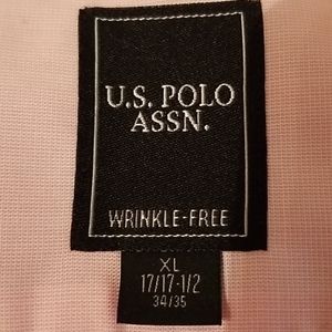 U.S.Polo Association men's long sleeved, button up shirt, pink, size xl 17- 17 1/2