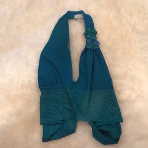 SOLD!!! Ema Savahl Halter Crop Top Flowers Blue Green S/M