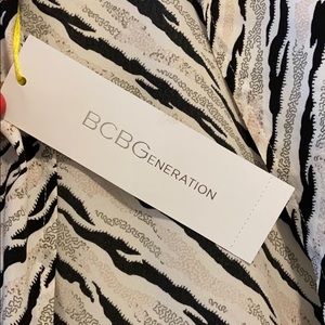 BCBGeneration minidress. Flowy sleeve and open back. Zips up the back. Black and white print. New with tags and never worn. Size 6. Super flattering. Smoke free and pet free home.