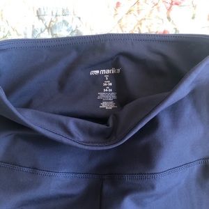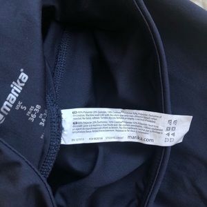 Brand new Marika workout leggings in navy blue. Size small (true to sz). Retail price is $65. Measurements (laid flat): rise = 10.25”; hip = 14.25”; inseam = 27.5”; waist = 12”. These are in perfect, brand new condition w/ no flaws whatsoever. I accidentally pulled the tag off, but have never worn them.