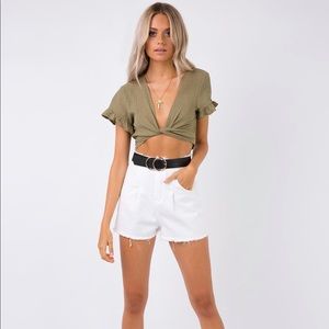 Princess Polly khaki (greenish) tie up top. Only worn a couple times. Perfect condition. Can be tied in the front or back. Size US 4. Sold out online.