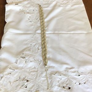 This gorgeous statement piece necklace has 4 strands, double braided with large end caps & lobster clasp. Measures 18” with an extended chain that adds 3”. Bright finish and nearly 1” wide.