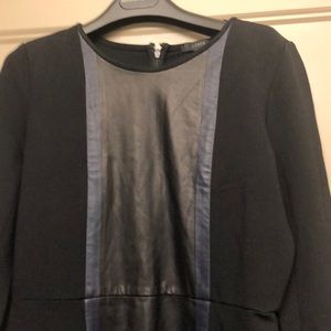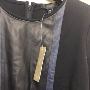 NWT J.Crew Leather Panel Dress, Size 6P. Black dress with black center leather panel with navy blue leather trim (first pic for image of fit only)