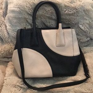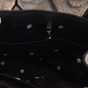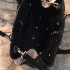 Black and pink Kate Spade purse. Can be a shoulder bag or you can wear it on your arm. Measurements are 9 3/4” (h) x 14” (at its widest) x 4 1/2” like new condition. There is a scuff mark on one bottom corners. Please ask any questions and thank you for looking.