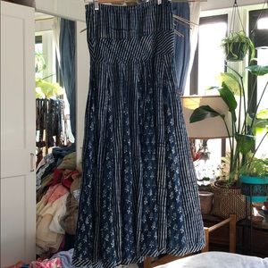 Free people Maheya skirt. Hand dyed blue and white. This is a floaty romantic skirt. It has a lining. It has an elastic waist. Go by measurements it is generous free ppl sizing.