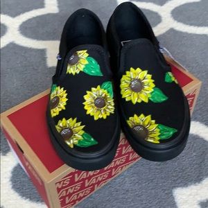 🌻Custom Vans-Slip Ons with Sunflowers🌻