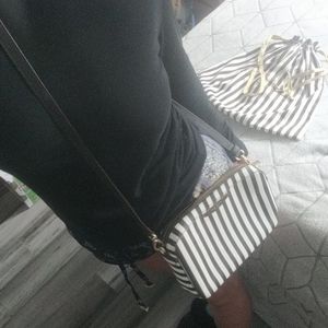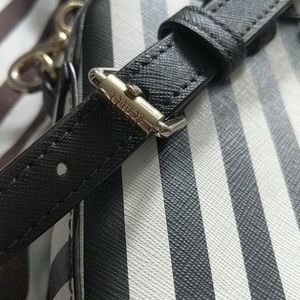 This is a gorgeous bag π It's in excellent condition with zero visible damage. 100% leather with detachable strap . Very light wear with pictures to show details . Please study the pictures because bag will be sold as is !! 2 tone signature stripes in white and brown with all gold hardware. Offers welcome