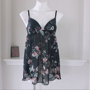 APT 9 INTIMATES FLORAL LACE TRIM SHEER LINGERIE NAVY Size M NWOT