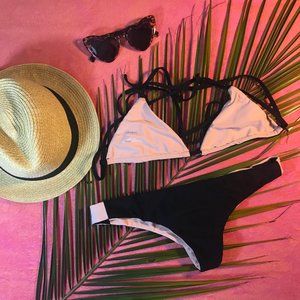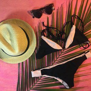 gently used 2 pcs gently used; excellent condition - lumahai triangle bikini top with cross back tie. Black with cream colors.