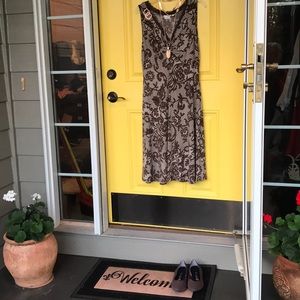 Listing is for dress only, although the Kendra Scott earrings are for sale separately and I would bundle this dress in for free with a reasonable offer on the rose gold earrings pictured. Rothy’s are mink but are not for sale.