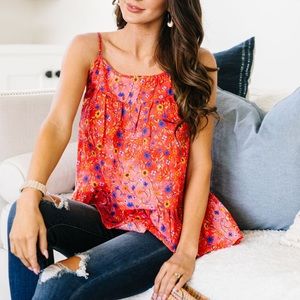 Ditzy Floral Tank in Coral
