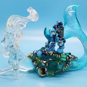 Lot of 6 Stretchy Blue green iridescent crystal beaded Faux Gemstones Bracelets