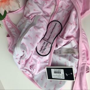 A Juicy logo front that adds versatility to this square, open back one piece swimsuit.
