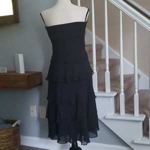 Perfect holiday dress Black! Black strapless dress by Sangria. 100% polyester. Beautiful flowy tiers. Very feminine & flattering. Great for a wedding or special occasion. Size 8.