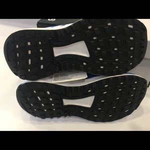 New in Box. Tie closure sneakers with variable eyelets for precise secure fit. Mesh upper, cloud foam midsole. Colors: Royal Blue/White