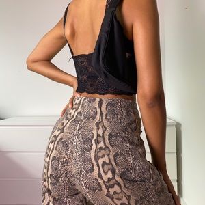 Gorgeous vintage snake prints pants. These pants are beautiful and very high quality. This is a vintage piece from Italy. They are very comfy too. The pants are in excellent condition.