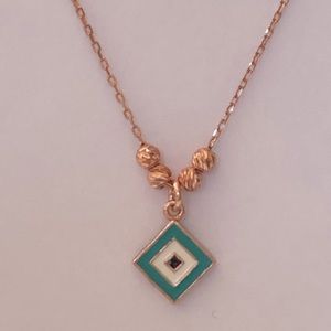 14K Rose gold plated on 925 sterling silver teal green blue / white / black handmade enamel evil eye charm necklace for girls or women in free gift box