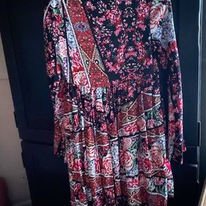 JAASE Nicoletta Plunge Purple Pink Black Floral Babydoll Mini Dress | Bohemian Long Sleeves | Cut Out Shoulders & Center | Gorgeous | Sexy | Date Night Ready | NWT