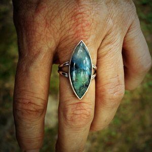 Marquise quatrum quattro ring in sterling silver in a size 8 1/2. Photos show flaws and it is lighter than the photos. Price is firm.