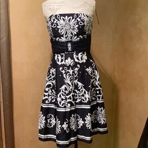 Lovely strapless dress w/ attached belt detail... straps can be worn (not included) satin loops sewn in front & back (see pics).