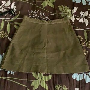 OG American Apparel (before they were sold) mini skirt in an olive green corduroy + gold buttons. High-waisted fit.