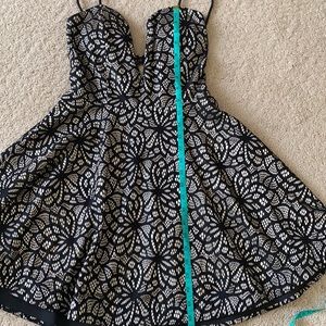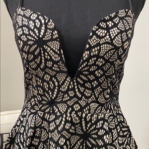 Black and Beige Dress - Plunge Front - Trac