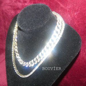 18K Gold Diamond Tennis + Cuban Link Chain Set