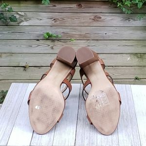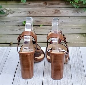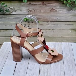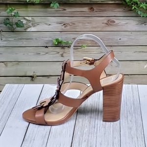 Michael Kors Floral Kit Dress Sandal Strap Block Heel Open Toe Tan Leather