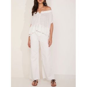 Free People Revolve High Rise White Straight Flare Jeans - high waisted
