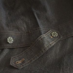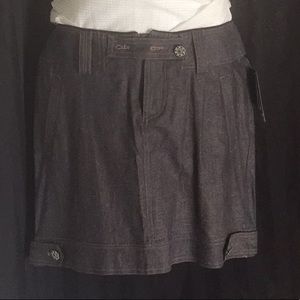 Grey with slight shimmer peachy undertone mini skirt with front zipper and flirted buttons large loops along waistline for belt front hidden pockets , flaps on upper back part of skirt decorative with flowered buttons gives illusion of back pockets bottom of skirt on both sides there’s a decorative removable piece with buttons refer to last picture size M(4P) photo does do it justice will retake photos