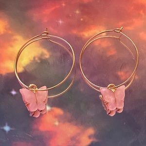 Light pink butterfly hoop earrings 💓