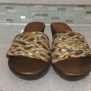 Italian Shoemaker Woven metallic wedge sandals slides