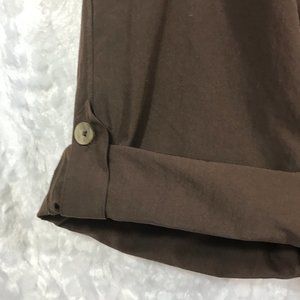 Hem can be worn buttoned up as shown in the photos, or rolled down where it hits almost at knee height.